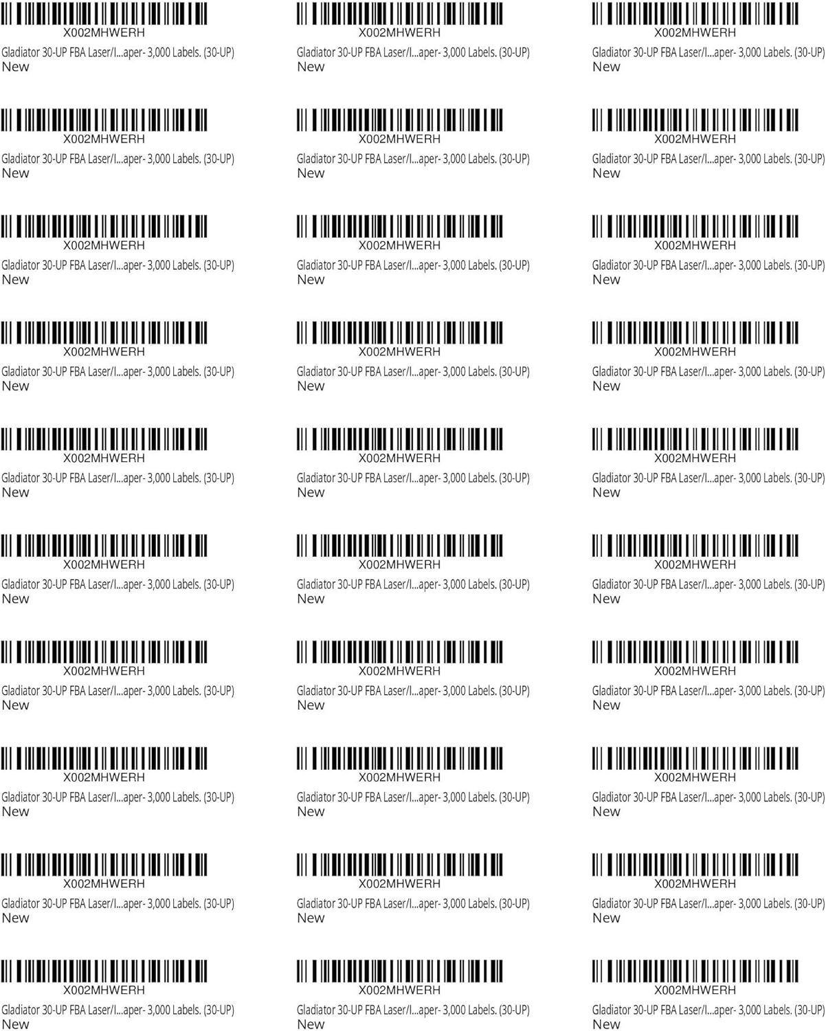 Gladiator 30-UP FBA Laser/Ink Jet Printer Labels Perfect for UPC, Barcode, ASIN #, FNSKU Labeling. White self-Adhesive Stickers, Fast-Peeling. 1” x ...