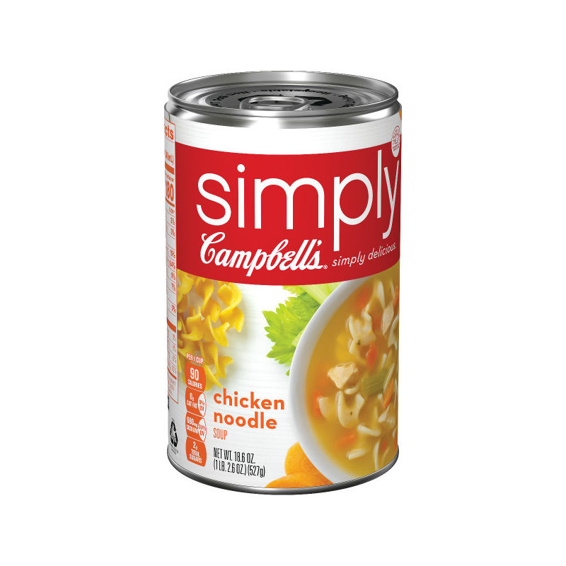 Campbell's Simply Chicken Noodle Soup 18.6 Oz. Cans, 8-Pack | Big Lots Simply Chicken Noodle Soup 18.6 Oz. Cans, 8-Pack By Campbell's Product Overview Description Campbell's Simply chicken noodle soup is made with simple ingredients: chicken meat with no antibiotics, egg noodles, farm grown carrots, celery, garlic, parsley and onions in a savory chicken broth.