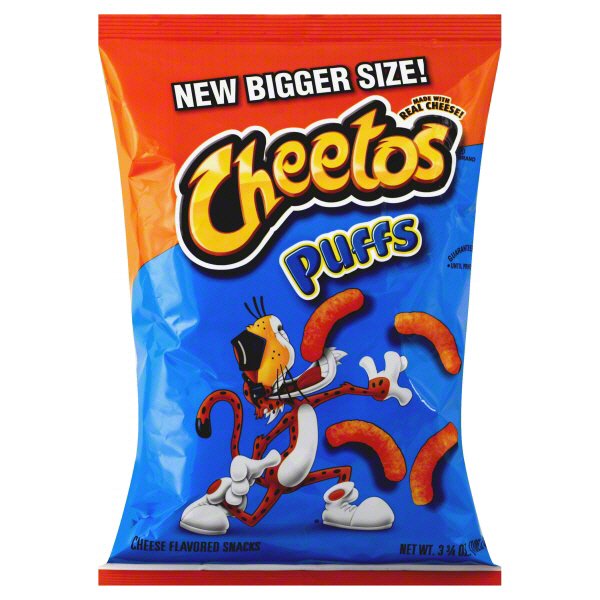 Cheetos puffs nutrition facts label. Frito Lay Flavor Mix Snacks - 42 Ct - Safeway Flavor Mix, Mega Size 7 Cheetos Crunchy Cheese Flavored Snacks: 1 oz ea., 5 Cheetos Puffs Cheese Flavored Snacks: 7/8 oz ea., 4 Lay's Sour Cream & Onion Flavored Potato Chips: 1 oz ea., 4 Lay's Barbeque Flavored Potato Chips: 1 oz ea., 5 Ruffles Cheddar & Sour Cream Flavored Potato Chips: 1 oz ea., 4 Fritos Chili Flavored Corn Chips: 1 oz ea., 7 Doritos Nacho Cheese Flavored Tortilla Chips: 1 ... Cheetos Puffs 8oz Bag | Garden Grocer Cheetos Brand Puffs Cheese Flavored Snacks.Made with real cheese! 866-855-4350 Customer Service. ... Nutrition Facts: Serving Size 28.0 g. Servings per container 9. Calories . 150. Calories from Fat . 0 ... manufacturers frequently change formulations, and we may not notice when a manufacturer changes the nutritional claims on a product's label ... Nutrition Facts for Cheetos Reduced Fat Puffs Snacks Total Carbohydrate 13g. 4%. Dietary Fiber 1g. Sugars 1g. Protein 2g. 0% Calcium 0mg. 2% Iron 0.4mg. *. The % Daily Value (DV) tells you how much a nutrient in a serving of food contributes to a daily diet. 2,000 calories a day is used for general nutrition advice. Baby Cheeto Puffs Nutrition Facts - simplyintentionallife.com Cheetos ® simply puffs white cheddar cheese flavored snacks are made with no artificial flavors, preservatives, or colors. 13 pieces (28g) nutrition facts. Track Macros, Calories, And More With Myfitnesspal. Here is a table of search results for cheese puffs. I didn't even believe it was my essay at first great job, thank you!