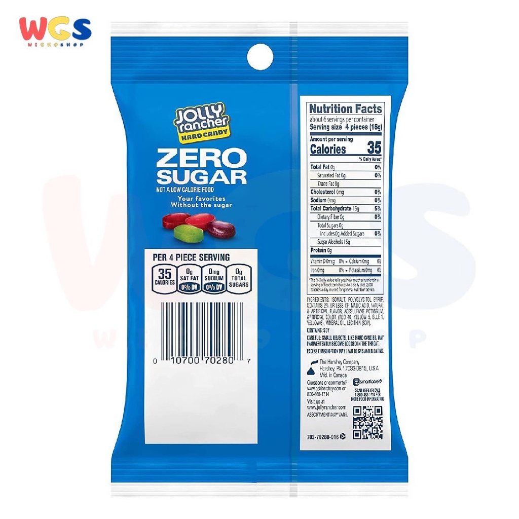 JOLLY RANCHER Cinnamon Fire Hard Candy, 7 oz bag - Hersheyland JOLLY RANCHER Nutrition Information Nutrition Facts Servings Per Container about 11 Serving size 3 pieces (18g) Amount per serving Calories 70 % Daily Value* Total Fat 0g 0% Saturated Fat 0g 0% Trans Fat 0g Cholesterol 0mg 0% Sodium 0mg 0% Total Carbohydrates 17g 6% Dietary Fiber 0g 0% Total Sugars 12g Includes 12g Added Sugar 23% Calories in Jolly Rancher Cinnamon Fire Hard Candy and ... - FatSecret Food database and calorie counter : Jolly Rancher Cinnamon Fire Hard Candy. Nutrition Facts. Serving Size: 3 pieces (18 g) Amount Per Serving. Calories. 70 % Daily Values* ... (18 g) of Jolly Rancher Cinnamon Fire Hard Candy. Calorie breakdown: 0% fat, 100% carbs, 0% protein. Related Candies from Jolly Rancher: Candy Cane: Jelly Hearts: Jolly ... en.wikipedia.org › wiki › List_of_productsList of products manufactured by The Hershey Company Jolly Rancher Holiday Candy Canes are candy cane shaped treats made in the original Jolly Rancher Hard Candy flavors like Blue Raspberry, Cherry and Green Apple. Corn Syrup, Sugar, Contains 2% or Less of: Malic Acid, Natural Flavor, Artificial Flavor, Sodium Lactate, Artificial Color: Red 40, Yellow 5, Blue 1, Glycerin, Lecithin [197] See How Many Calories in Jolly Rancher Cinnamon Fire Candy & More at ... Check out how many calories in Jolly Rancher Cinnamon Fire Candy. Get answers to all your nutrition facts questions at FitClick. Unrated . Posted by FitClick Wednesday, October 22, 2008 at 10:41am filed under Snacks and Sweets : Brand: Jolly Rancher. Fat Calories: 0% ...