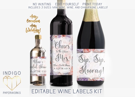 Mini Wine Labels - Etsy Boho Bridal shower Gift Wine Labels Avery Label Rust terracotta mini champagne bottle labels pampas grass Printable label Dusty orange Paula SweetCloudDesign (2,395) $4.65 Cheers EDITABLE PRINTABLE Wine Label Champagne Mini Bottle Favor Engagement Wine Bottle Wedding Mini Champagne Bottle Birthday Wine Burgundy PlusOneStyle (1,179) $3.90