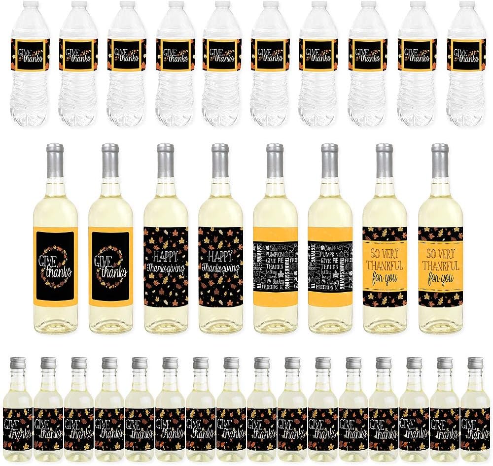 Big Dot of Happiness Give Thanks - Mini Wine Bottle Labels, Wine Bottle Labels and Water Bottle Labels - Thanksgiving Party Decorations - Beverage Bar ...