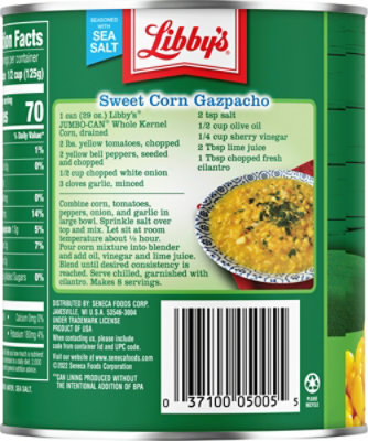 Canned corn nutrition label. Corn: Kinds, Nutrition, Benefits, Risks, & Preparation - WebMD When you're short on time, frozen and canned corn make good substitutes for fresh. Just check the nutrition label to make sure it doesn't have added salt, butter, or cream. Corn tastes sweetest if ... Pet Food Labels - General | FDA The pet food label contains a wealth of information, if one knows how to read it. ... The "25%" or "dinner" rule applies to many canned and dry products. If the named ingredients comprise at least ... Calories in Del Monte Canned Corn and Nutrition Facts There are 70 calories in 1/2 cup (125 g) of Del Monte Canned Corn. Get full nutrition facts for other Del Monte products and all your other favorite brands. ... of Del Monte Canned Corn. Calorie breakdown: 14% fat, 80% carbs, 6% protein. Related Corn from Del Monte: Sweet Corn Cream Style: Whole Kernel Fire-Roasted Corn Blend: Fresh Cut Whole ... Cream Style Sweet Corn, 14.75 oz. - Libby's Vegetables Protein 1g: Vitamin D 0mcg 0%: Calcium 0mg 0%: Iron 0.2mg 2%: Potassium 90mg 2%: The % Daily Value (DV) tells you how much a nutrient in a serving of food contributes to a daily diet. 2,000 calories a day is used for general nutrition advice.