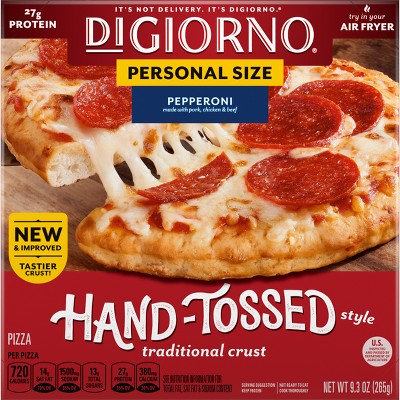 Heggies Pizza, Thin Crust, Sausage & Pepperoni - Instacart Place on rack in oven temperature and times indicated. Always cook to an internal temperature of 160 degrees F. Allow pizza to cool at least 2 minutes before eating. Conventional Oven: Preheat to 450 degrees F. Cook 13-15 minutes or until cheese is golden brown. Pizza Oven: Cook 10 minutes or until cheese is golden brown. Calories in Heggies Pizza Pizza, Sausage & Pepperoni Heggies Pizza Nutrition Facts and Calories Nutrition Facts 390 Calories Fat 22 g Carbs 25 g Fiber 1 g Protein 22 g Calorie Burn Time How long would it take to burn off 390 Calories of Plain or Buttermilk Biscuit, lower fat, refrigerated ? Running 27 minutes Jogging 36 minutes Hiking 54 minutes Cycling 67 minutes Swimming 70 minutes Walking Pizza | Heggies Pizza Nutrition panel Made with sausage, pepperoni, onions, mushrooms and the freshest sliced-and-diced green peppers. Topped with plenty of mozzarella cheese. Six Pack™ Nutrition panel Made with 4 meats and 2 cheeses. Loaded with sausage, pepperoni, Canadian bacon, bacon, cheddar and mozzarella. @PicnicLifeFood - 3/17 Chicken Alfredo Nutrition panel Heggies Sausage And Pepperoni Frozen Pizza - 26oz : Target For over 30 years, we've focused on nothing fancy—just great pizza. If the item details above aren't accurate or complete, we want to know about it. Report incorrect product info. Serving Size: 147 g Serving Per Container: 5 Amount Amount per serving: Calories: 370 % Daily Value* Total Fat 19g 24% Saturated Fat 9g 45% Trans Fat 0.5g