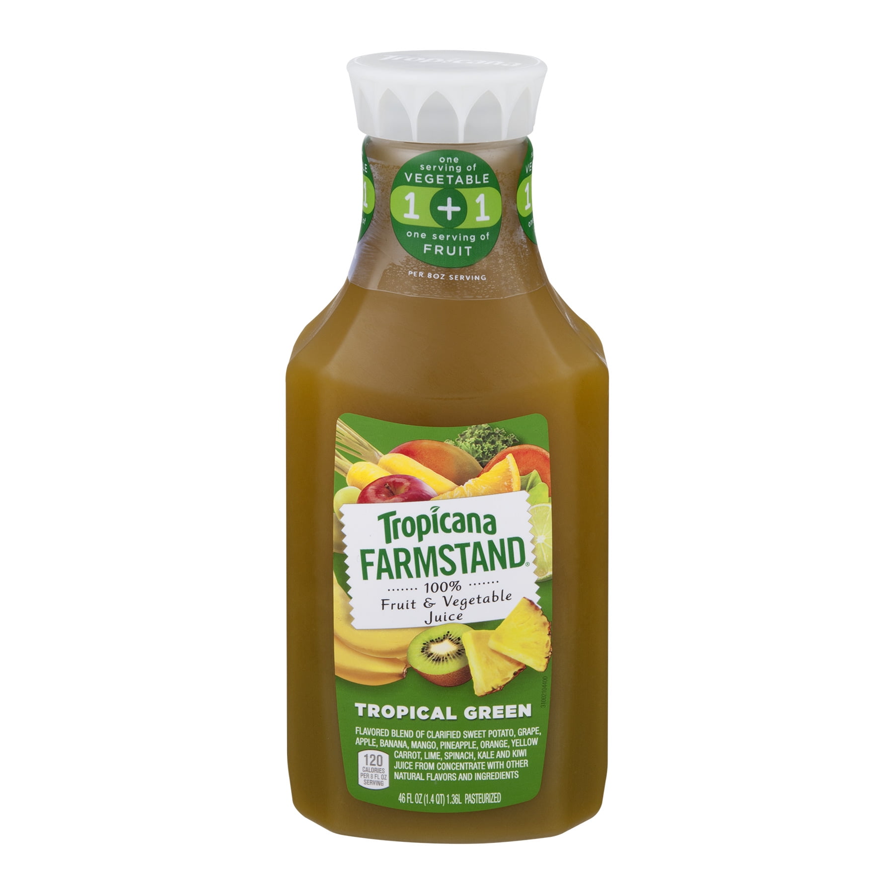 Tropicana Farmstand Juice as Low as $1.00 at Weis Markets! $1.50/1 Tropicana Farmstand Tropical Green 46 oz. bottle, 6/7 SS, exp. 8/16/15 We found the Tropicana Farmstand Tropical Green Juice is included in this sale. Using the Tropicana Farmstand Tropical Green coupon from the 6/7 Smart Source insert, we will be able to score these for just $1.00! That is a savings of over 75%! Tropicana 100% Juice, Fruit & Vegetable, Tropical Green Get Tropicana 100% Juice, Fruit & Vegetable, Tropical Green delivered to you in as fast as 1 hour via Instacart or choose curbside or in-store pickup. Contactless delivery and your first delivery or pickup order is free! Start shopping online now with Instacart to get your favorite products on-demand. How to Eat More Vegetables and Not Get Totally Sick of Them! # ... Tropicana Farmstand Tropical Green contains juices from sweet potatoes, grapes, apples, bananas, mangos, pineapple, oranges, carrots, limes, kale and spinach. All of those nutritious ingredients combine for a delicious, tropical taste. It is an excellent source of vitamins A and C. Farmstand Tropical Green gives you one serving of fruit AND one ... 100% Fruit & Vegetable Juice, Tropical Green Nutrition Facts - Eat This ... 100% Fruit & Vegetable Juice, Tropical Green Tropicana Farmstand. Main info: 100% Fruit & Vegetable Juice, Tropical Green Tropicana Farmstand 8 fl oz 120 Calories 27 g 0 g 1 g 0 g 0 mg 0 g 55.0 mg 26 g 0 g. Report a problem with this food Find on Amazon. Percent calories from... Nutrition Facts ...