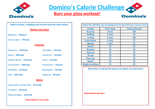 Domino's calories calculator. Domino's Calories Chart - Nutrition Guide - JustChartit Dominos Pizza Slice Calories. The largest pizza at Domino’s is 16″ wide, has 12 slices, and serves 5-8 people. Medium Domino’s pizza is 14″ has eight slices, and serves 3-5 people. The smallest Domino’s pizza is about 9.5″, has up to 6 slices, and serves two to three people. 1 slice = 370 calories. How Many Calories in a Piece of Domino’s Pizza? Let the Domino’s Cal-O-Meter Do the Calculating. When you want to know how many calories are in a piece of pizza, the Domino’s Cal-O-Meter can do the math. If your pie is customized, then choose Build a Pizza. Then select the size, crust, cheese amount, and toppings. The calories will calculate before your eyes! Nutritional Cal-O-Meter for Building a Pizza Online with Domino's Choose food items from the left. to calculate the calories. Availability of toppings may vary by store and not all menu items are supported in this guide. Percent Daily Values (DV) are based on a 2,000 calorie diet. The ingredient listings are provided by ingredient manufacturers. Domino's Pizza LLC, its franchisees and employees do not assume responsibility for a particular sensitivity or allergy to any food provided from our stores. Nutritional Cal-O-Meter for Building a Pizza Online with Domino's Calculate the calories with the Domino's Cal-O-Meter before you order pizza, sandwiches, pasta, drinks, sides, desserts, and condiments. Build your pizza now!