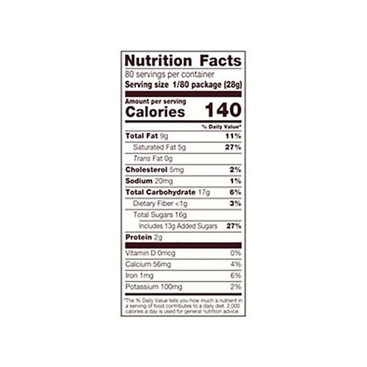 Hershey bar nutrition label. › en_us › homeAllergens | The Hershey Company Allergens. We understand that it's sometimes difficult to make informed choices when shopping with an allergen or food sensitivity in mind. The best way to determine if a product contains an allergenic ingredient is to read our product label. When a product contains a major allergen, it is listed as an ingredient—the label includes an ... › products › hersheys-milk-chocolate-candy-bars-9-3-oz-6-packHERSHEY'S Milk Chocolate Candy Bars, 9.3 oz, 6 pack Nutrition Information Nutrition Facts Servings Per Container 6 Serving size 1 bar (43g) Amount per serving Calories 220 % Daily Value* Total Fat 13g 21% Saturated Fat 8g 42% Trans Fat 0g Cholesterol 10mg 4% Sodium 35mg 1% Total Carbohydrates 26g 9% Dietary Fiber 1g 4% Total Sugars 24g Protein 3g Vitamin D 27.7iu 6% Calcium 86.7mg 8% Iron 1.5mg 8% › en_us › homeZero Sugar | The Hershey Company They are sweetened with sugar alcohols and provide about 20% fewer calories per serving than our classic versions but are not necessarily low-calorie foods. Sugar alcohols (or polyols), contain some calories and increase blood sugar levels to varying degrees. HERSHEY'S Milk Chocolate with Almonds Candy Bar HERSHEY'S Milk Chocolate Bars with Almonds are more than just candy bars. They're chances to stop and savor life's sweeter side, so stock up and enjoy. ... Nutrition Label. Nutrition Facts. Servings Per Container 1. Serving size 1 bar Amount per serving. Calories 210 % Daily Value* Total Fat 14g 18%. Saturated Fat ...