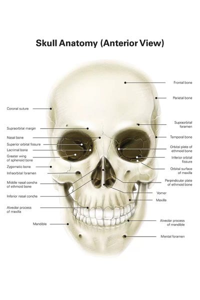 42 skull diagram labeled