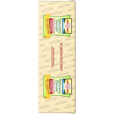 Calories in Land O' Lakes Naturally Slender Pasteurized ... There are 90 calories in 1 cube, 1" (1 oz) of Land O' Lakes Naturally Slender Pasteurized American Deli Cheese. You'd need to walk 25 minutes to burn 90 calories. Visit CalorieKing to see calorie count and nutrient data for all portion sizes. Naturally Slender Reduced Fat Deli American Cheese Product 25% Less Fat than regular Pasteurized Process American Cheese, Contains 6g Fat, regular American Cheese contains 9g Fat, Good Source of Calcium, Good Source of Protein, See Nutrition Information for Saturated Fat and Sodium Content Naturally Slender American Cheese - MyFitnessPal Naturally Slender American Cheese Serving Size: 1 oz 90 Cal 5% 1g Carbs 66% 6g Fat 29% 6g Protein Track macros, calories, and more with MyFitnessPal. Join for free! Daily Goals How does this food fit into your daily goals? Calorie Goal 1910 Cal 90/2000Cal left Fitness Goals: Heart Healthy Fat 61 g 6/67g left Sodium 2000 mg 300/2300mg left